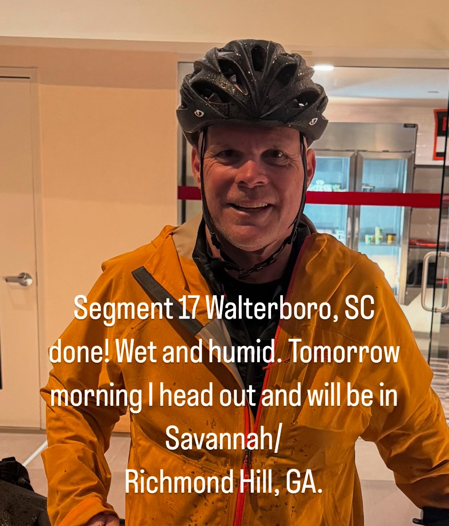 Wet and humid. Tomorrow morning, I head out and will be in Savannah/Richmond Hill, GA. 54.49 mi 548ft cancersoloride.com #PMC2025